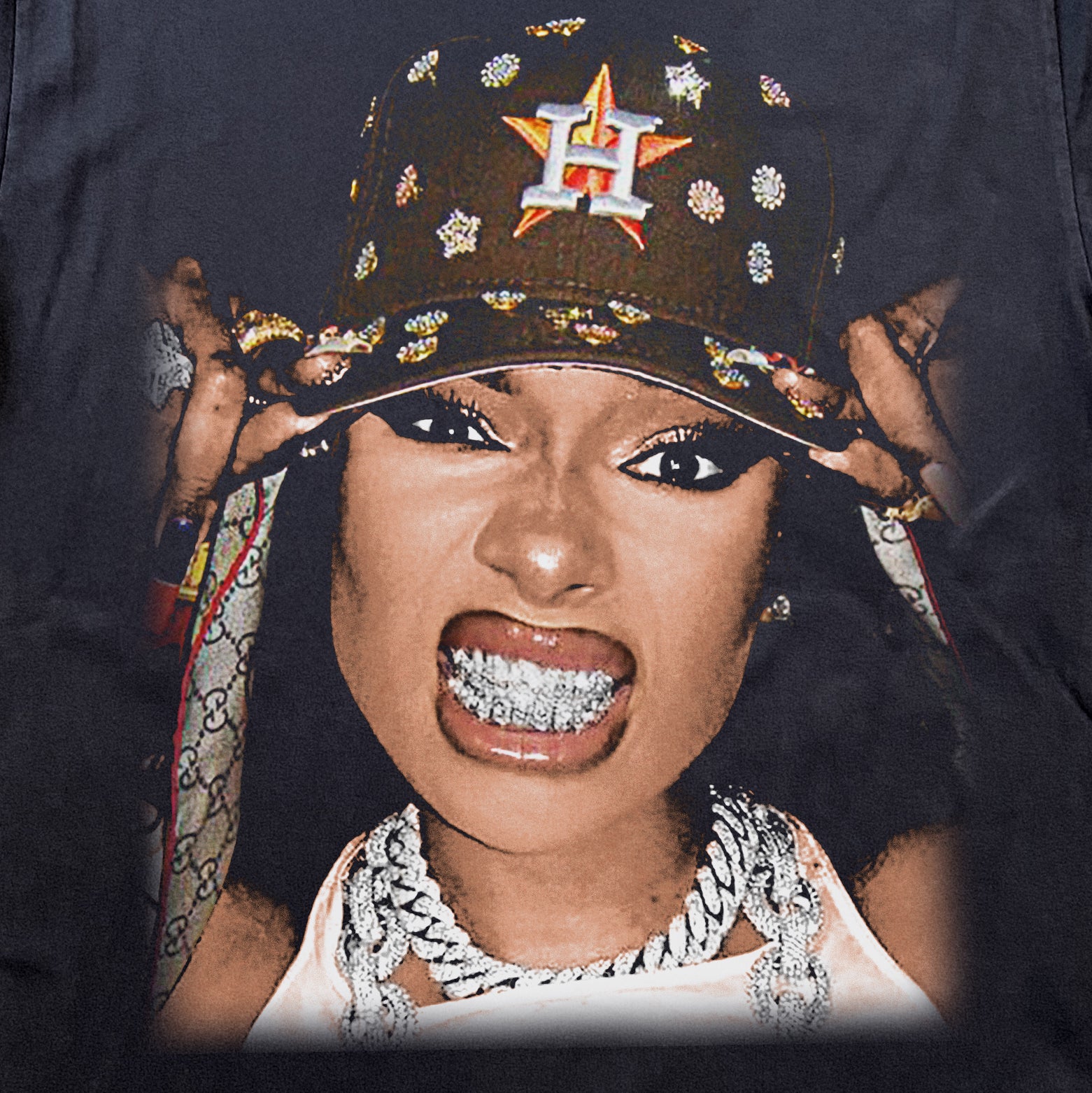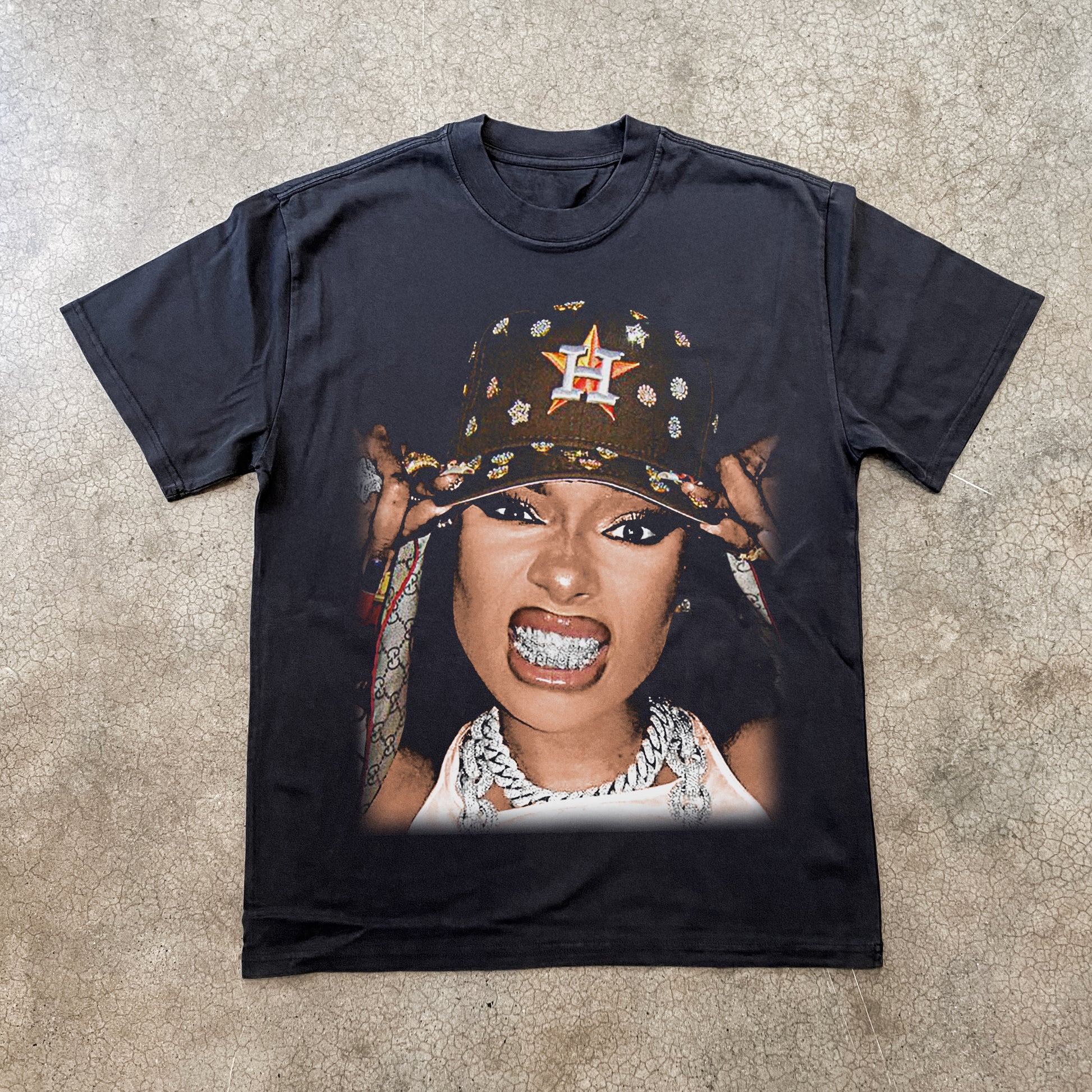 MEGAN THEE STALLION BIG HEAD HEAVYWEIGHT BLACK T-SHIRT
