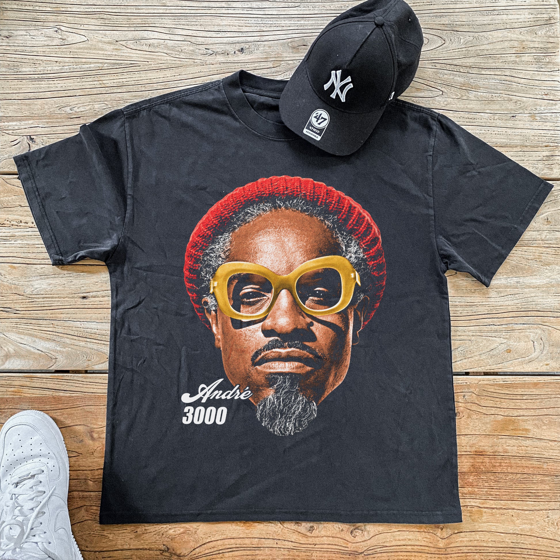 ANDRE 3000 'BEANIE' BIG HEAD HEAVYWEIGHT BLACK T-SHIRT